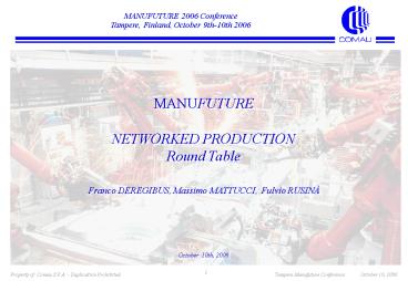 1MANUFUTURE 2006 Conference Tampere, Finland,