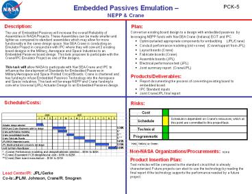 embedding (JPL/Crane) - Conduct performance modeling (old vs new)