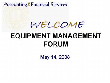 WELCOME EQUIPMENT MANAGEMENT FORUM - PowerPoint PPT Presentation