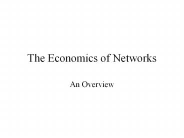 The Economics of Networks PowerPoint PPT Presentation