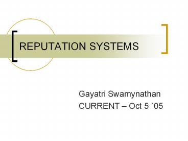 REPUTATION SYSTEMS PowerPoint PPT Presentation