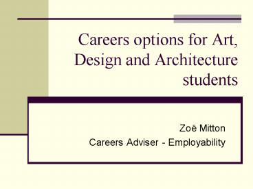Careers options for Art, Design and Architecture students PowerPoint PPT Presentation
