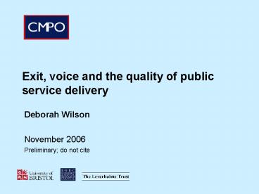 Exit, voice and the quality of public service delivery PowerPoint PPT Presentation