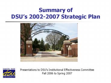 Title: Summary of DSUs 20022007 Strategic Plan