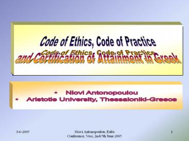Code of Ethics, Code of Practice - PowerPoint PPT Presentation