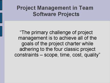 <Notice: Removed> Project Management in Team Software Projects PowerPoint PPT Presentation