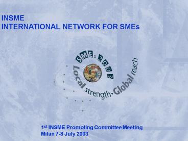 1 INSME INTERNATIONAL NETWORK FOR SMEs
