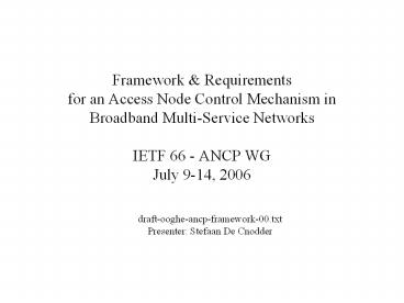 submitted for L2CP BOF - May 2006 draft-ooghe-ancp-framework-00.txt