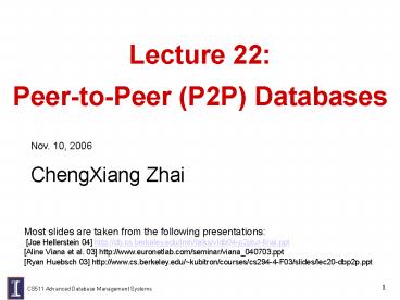 <Notice: Removed> Lecture 22: PeertoPeer P2P Databases PowerPoint PPT Presentation
