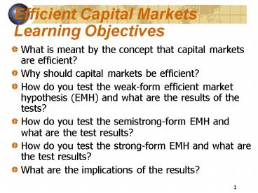 consistent with its risk - Efficient Market Hypothesis (EMH) - divided into