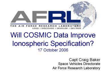 Title: Will COSMIC Data Improve Ionospheric Specification 17 October 2006