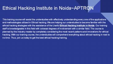 our arrangement accomplices. - Ethical Hacking Training in Noida will be led on