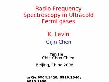 Title: Radio Frequency Spectroscopy in Ultracold Fermi gases K. Levin