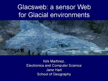 Glacsweb: a sensor Web for Glacial environments PowerPoint PPT Presentation