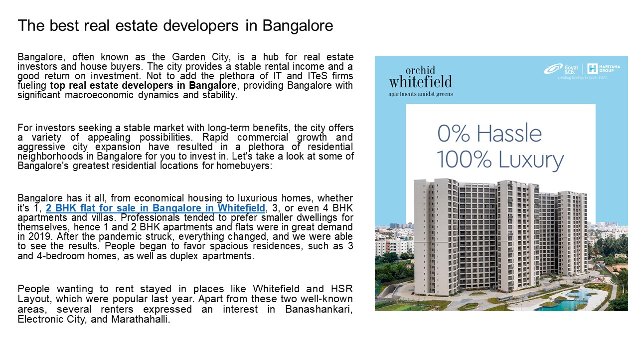 more popular among Bangalore tenants. - Purchasing a 2 BHK for sale in a