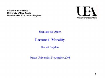 Spontaneous Order Lecture 6 Morality Robert