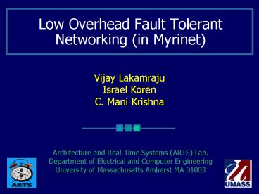 Title: Low Overhead Fault Tolerant Networking in Myrinet