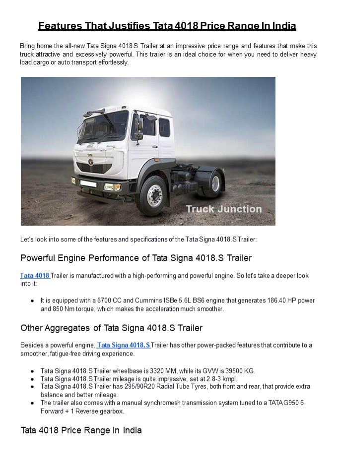 Title: Features That Justifies Tata 4018 Price Range In India