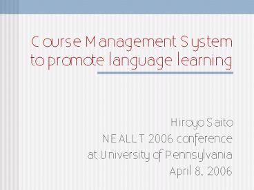 Course Management System to promote language learning PowerPoint PPT Presentation