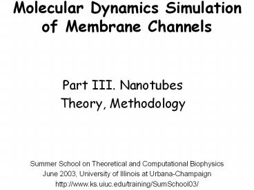 Title: Molecular Dynamics Simulation of Membrane Channels