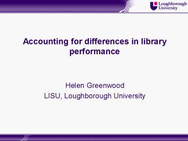 Accounting for differences in library performance PowerPoint PPT Presentation