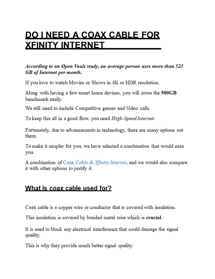 Title: DO I NEED A COAX CABLE FOR XFINITY INTERNET