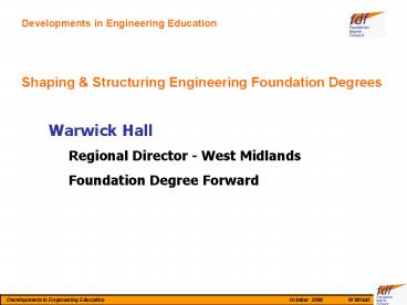 Manufacturing Foundation Degrees in the region. - Providing a common approach to involving