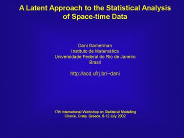 Statistical Modelling Chania, Crete, Greece, 8-12