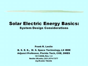 <Notice: Removed> Solar Electric Energy Basics: System Design Considerations PowerPoint PPT Presentation