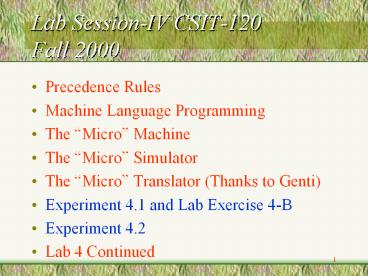 Lab SessionIV CSIT120 Fall 2000 PowerPoint PPT Presentation