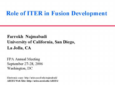 - Electronic copy http//aries.uscd/edu/najmabadi/