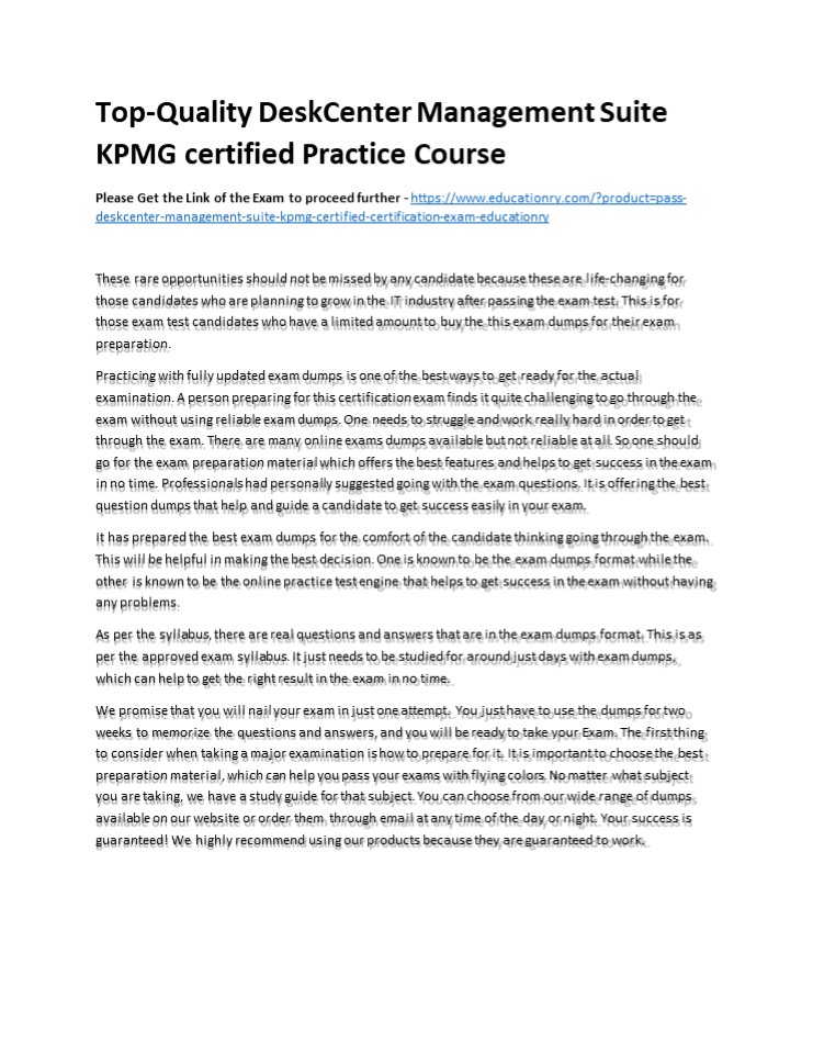 Title: Top-Quality DeskCenter Management Suite KPMG certified Practice Course