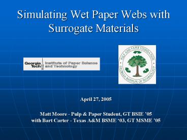 Simulating Wet Paper Webs with Surrogate Materials PowerPoint PPT Presentation
