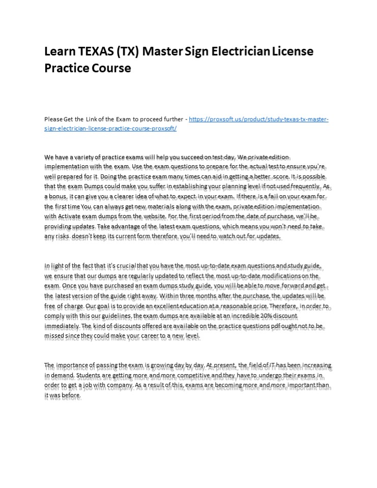 Title: Learn TEXAS (TX) Master Sign Electrician License Practice Course