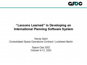 Title: Lessons Learned in Developing an International Planning Software System