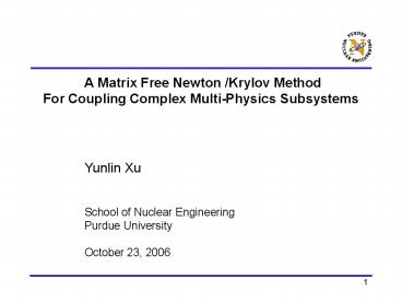 <Notice: Removed> A Matrix Free Newton /Krylov Method For Coupling Complex Multi-Physics Subsystems PowerPoint PPT Presentation