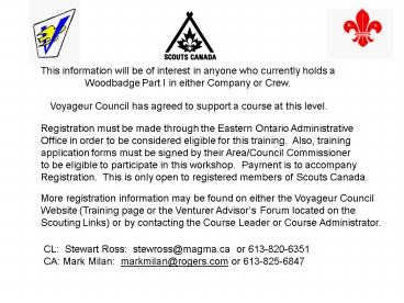 the Scouting Links) or by contacting the Course