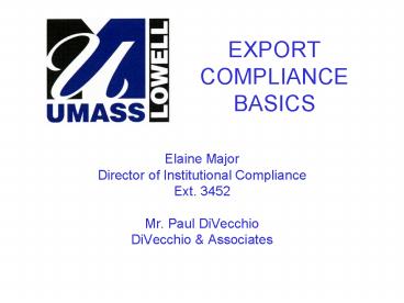 EXPORT COMPLIANCE BASICS PowerPoint PPT Presentation