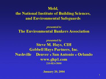 BUILDINGS AND MOLD ALLIANCE, December 10, 2003