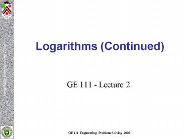Logarithms Continued PowerPoint PPT Presentation