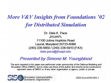 to be appropriately identified/characterized - Distributed simulation may lack information