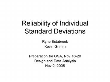 Reliability of Individual Standard Deviations PowerPoint PPT Presentation