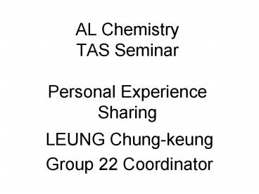 AL Chemistry TAS Seminar Personal Experience Sharing PowerPoint PPT Presentation