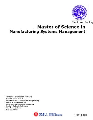 Master of Science in Manufacturing Systems Management PowerPoint PPT Presentation