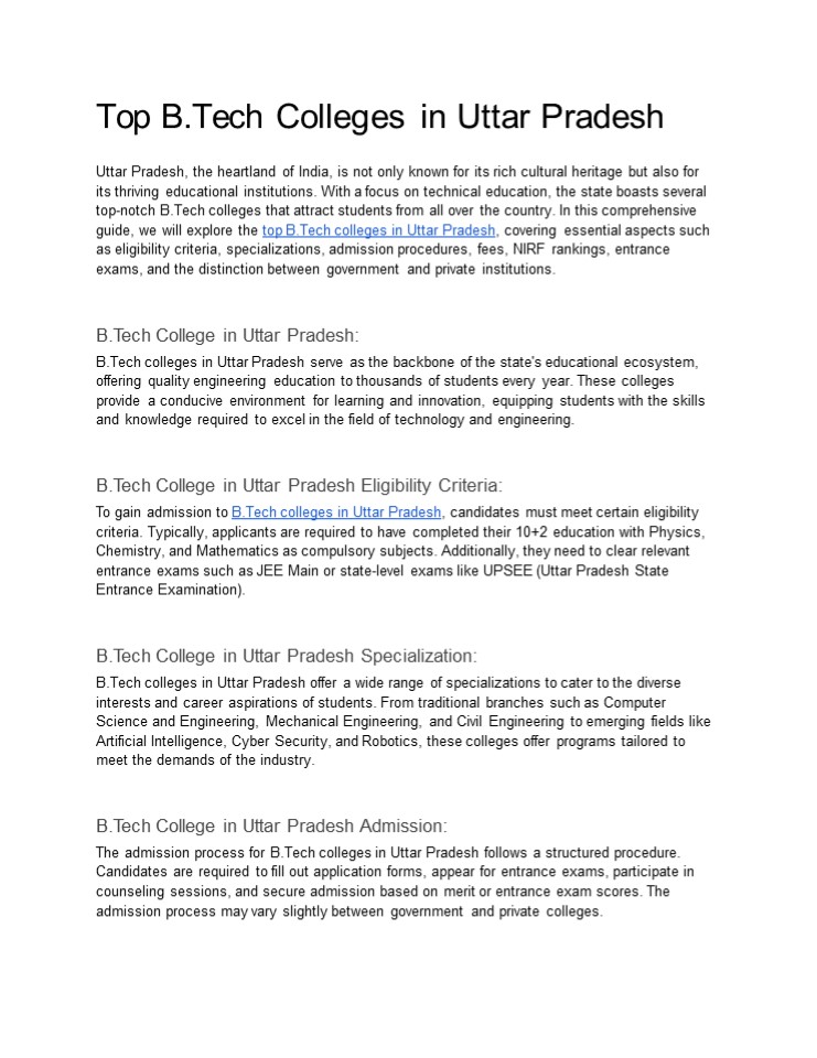 Title: Top B.Tech Colleges in Uttar Pradesh