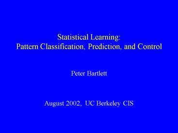 <Notice: Removed> Statistical Learning: Pattern Classification, Prediction, and Control PowerPoint PPT Presentation