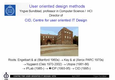 Nottingham ZKM, Karlsruhe CID, KTH)