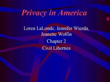 Privacy in America PowerPoint PPT Presentation