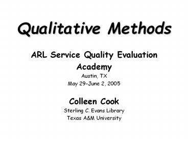 <Notice: Removed> Qualitative Methods PowerPoint PPT Presentation