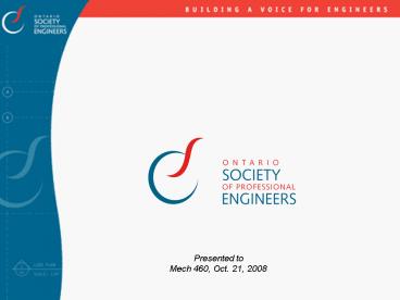 under the Ontario Building Code. - OSPE recently expressed support for an Ontario